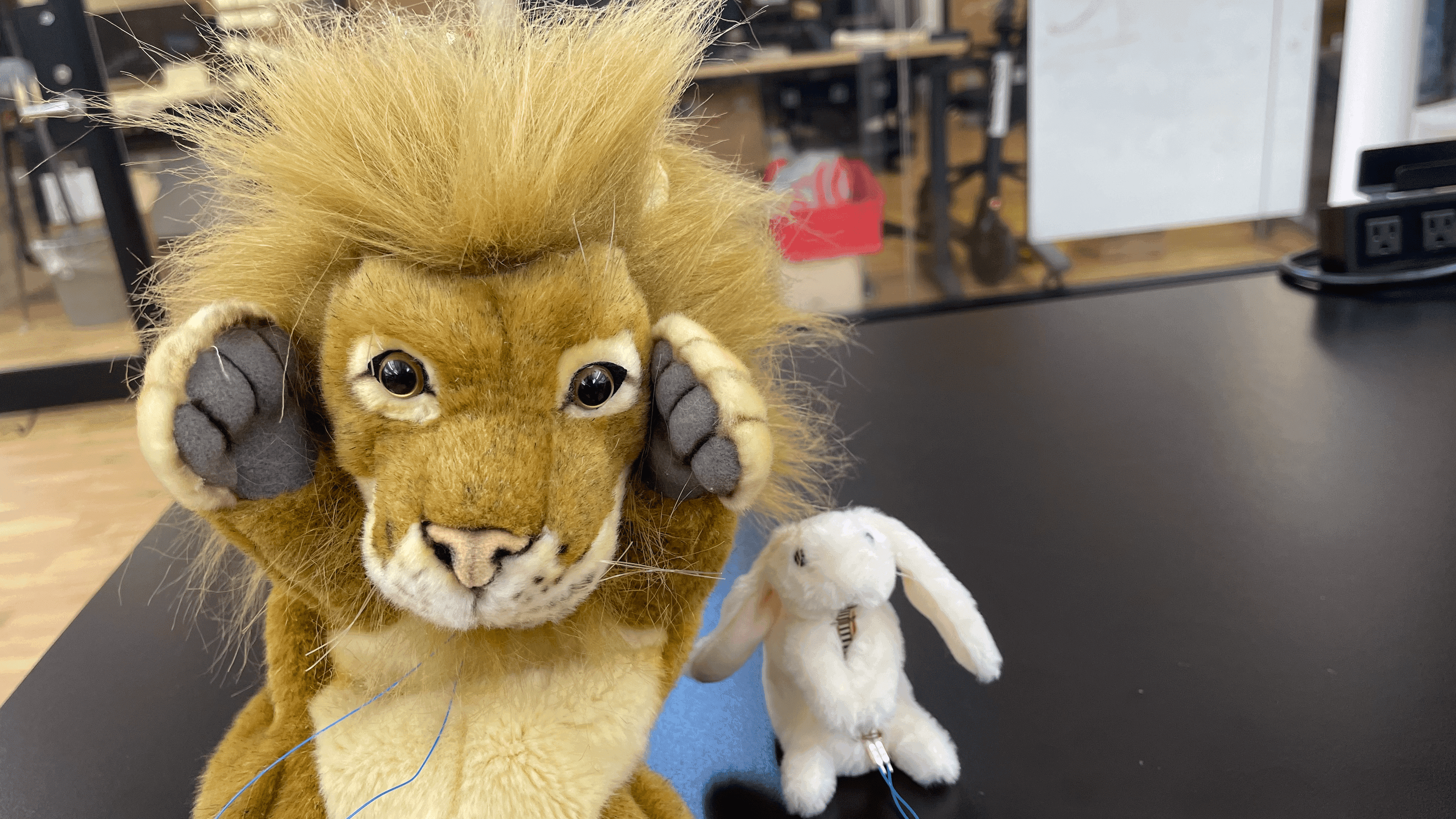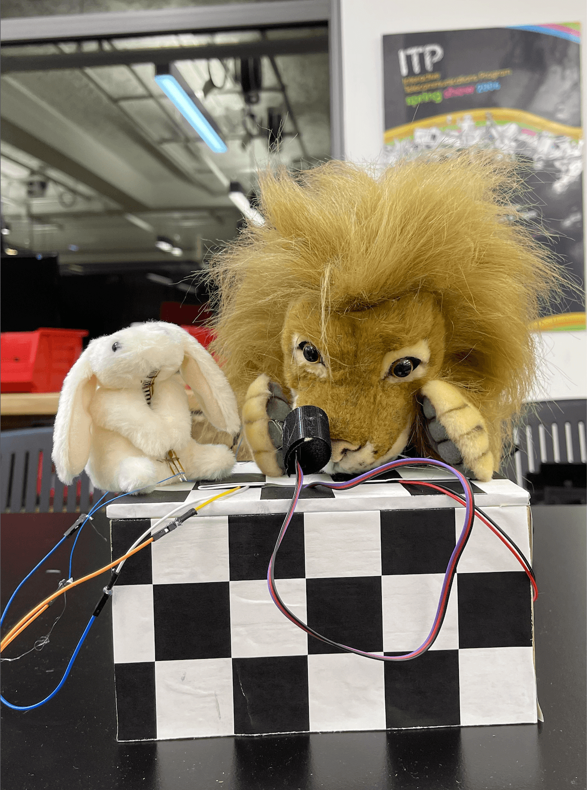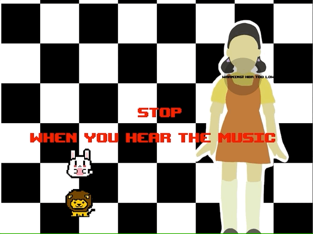 Inspired by the popular movie "Squid Game," this project invites players to control characters on the screen using hand puppets. The lion puppet is tasked with controlling the Lion character, while the rabbit puppet takes the role of moving the Rabbit character. However, there's a twist – players need to bend the puppets to make the characters move.