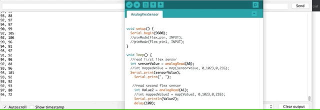 Testing Flex Sensors. P5.js Code |Arduino Code